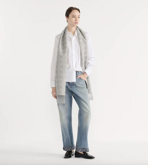 这条围巾采用 Dior 经典的藤格纹图案,以100%灰色山羊绒面料精心制作,双面设计实用而精致。它不止是一件保暖单品。