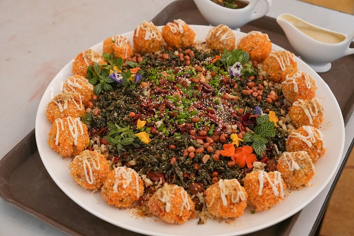 推介会前夕,嘉宾们在东源仙湖茶基地的深度体验,成为解码东源文化的关键一环。茶叶炒蛋、茶香鸡、茶香排骨等以仙湖茶为特色的创意料理,让嘉宾们大快朵颐,更直观感受到“茶食同源”的东源饮食智慧。而十二花神酒的亮相,则通过客家米酒的醇厚与花果清甜的交织,向嘉宾传递了东源酿酒技艺的传承与创新;不仅如此,小厂餐车成员们更带着十几日在地体验时对“东源九珍”的了解与理解,将一路从万绿湖畔走向田园与茶山感受、体验、品尝过的泡茶·万绿湖天然水、万绿湖山茶油系列产品、万绿湖航天丝苗米、万绿湖鲜、东源板栗、状元瓜、东源米粉一一纳入创作素材库,为即将到来的推介会奠定整体风味基础。这些文化体验与特色产物不仅为小厂餐车东咚咚队的创作提供了灵感源泉,更通过镜头语言向观众传递了“东源九珍”所代表的完整风土人情体系——它们源自这片山水的馈赠,承载着东源的物产之美、技艺之魂与人情之暖,共同构成一地滋味的生动表达,不仅打造出独具辨识度的内容载体和可视化标签,更为东源文旅的差异化竞争提供了新思路。