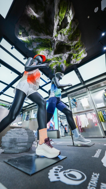 谈及首店的空间设计理念,品牌创始人艾国永在现场采访中,解读了全店展陈的内核 —— 科技与自然的交融,手作与人工智能的对抗。他表示,前者是将山野自然场景与科技元素展陈深度融合,让跑者在城市商圈里,既能沉浸式感受户外奔跑的自然氛围,也能更直观地读懂装备的专业价值;后者是通过手作质感的空间表达与智能化服务,打破空间的同质化,让跑者在千篇一律的商业场景中,收获耳目一新的视觉体验与专属跑者的情感共鸣。