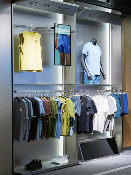 短短半小时内,门店全系列产品陈列区、试穿区、收银台前均排起长队,现场氛围火热。区别于传统运动门店的品类陈列逻辑,马孔多首店首创温度分区陈列体系,划分不同跑步场景的装备陈列,跑者可根据日常跑步的气温与场景,一站式匹配全套穿搭,清晰实用的陈列逻辑收获到场跑者的广泛认可。