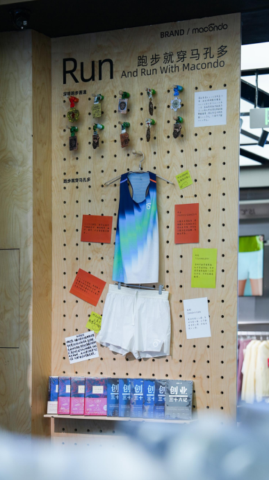 店内同步打造多处沉浸式跑步空间:手作质感的品牌文化墙完整呈现11年发展历程,专设的跑者藏品征集区将定期展出精英跑者赛事纪念物;马拉松小镇体验区通过赛事日历、号码布购物袋等元素,全方位还原跑步氛围。“逛过很多运动品牌店,能把跑步文化刻进每一处细节的,马孔多是独一份。” 一位10年跑龄的资深跑友在文化墙前驻足说道。