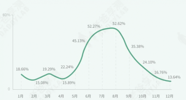 根据《2020国民家居环保报告》收集的全国6.76余万个普通家庭的环境检测数据显示,从每年4月下旬开始,甲醛超标的风险开始直线上升,夏季更是有近一半的家庭出现甲醛超标。