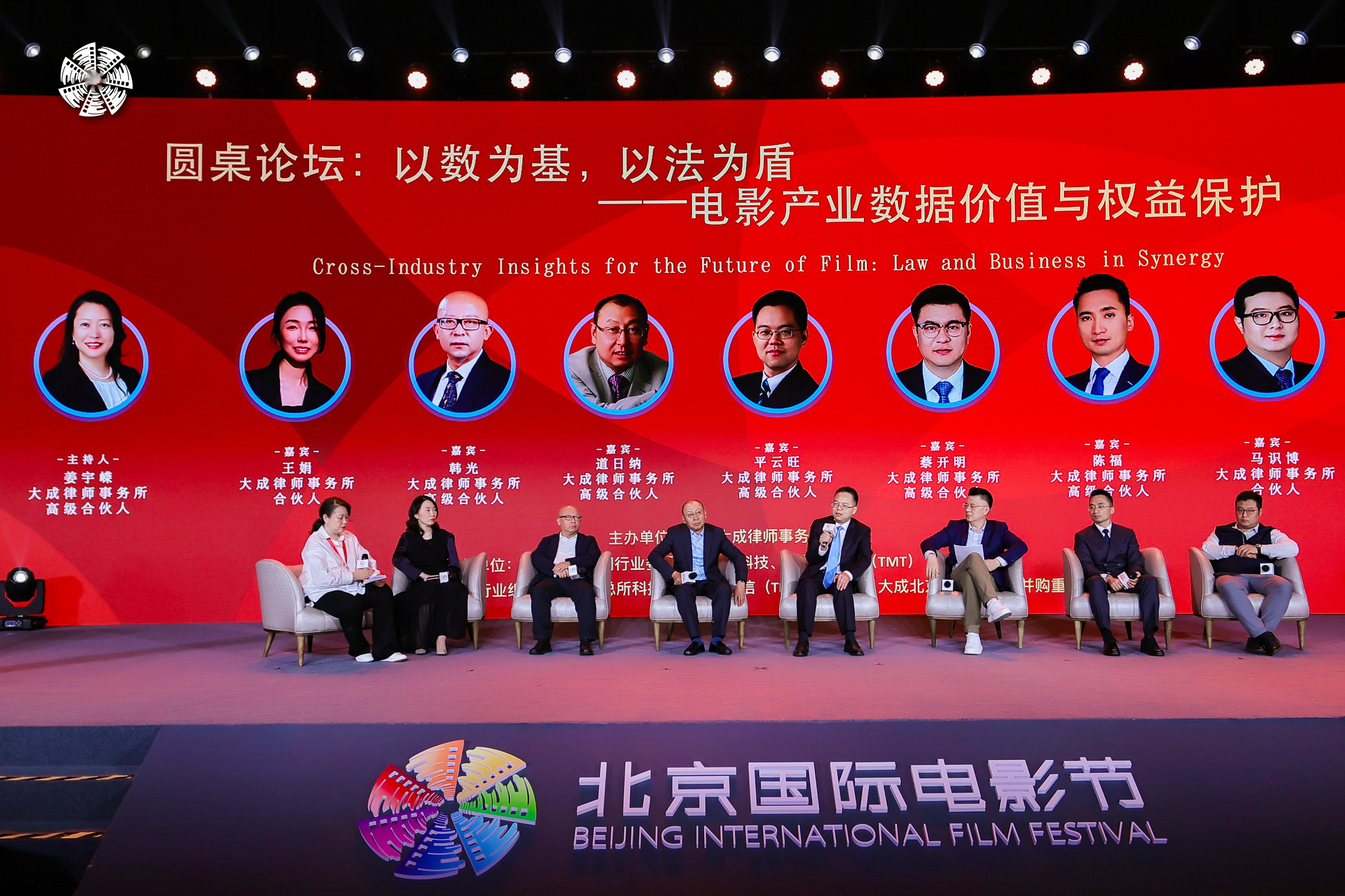 4月17日16:30,由北京大成律师事务所主办,大成消费休闲行业委员会,大成科技、媒体与通信(TMT)行业委员会,大成北京总所消费休闲行业组,大成北京总所科技、媒体与通信(TMT)行业组,大成北京总所公司与并购重组专业组承办的大成律师影视论坛「以他山之石,启电影产业新程——法商同行,行稳致远」在北影节论坛主会场成功举办。本次论坛汇聚来自行业协会、高校学界及法律实务界的多位专家学者与大成的多位资深律师,通过主旨发言与圆桌讨论等多元形式,围绕人工智能背景下的影视产业发展、借鉴其他行业与AI协作发展的经验,从投融资结构、税务合规、前期开发风险及数据治理等核心议题展开深入交流。