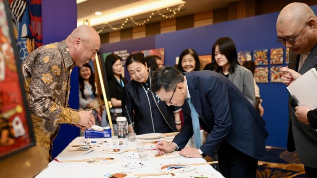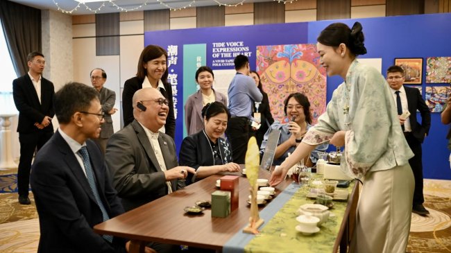 展览还特别设置了充满浙江海洋文化特色的非遗互动体验区。纳兹米部长、陈少春大使等嘉宾在非遗传承人的介绍下,饶有兴致地体验了鱼拓画制作、渔民画填色等浙江特色非遗,并品鉴了被誉为中国十大名茶的西湖龙井。嘉宾们对本次展览给予高度评价。纳兹米部长表示,希望能有更多文莱民众前来观展,深入了解浙江海洋文明的独特魅力与发展成就,促进两地民心相通。